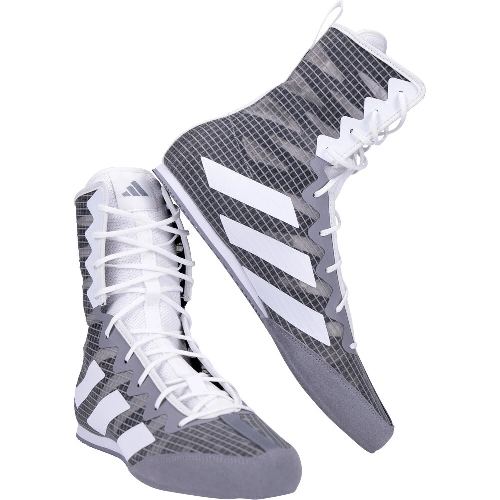 Tried and trusted. No stranger to the gym or the ring, Adidas Box Hog boxing shoes keep your intensity high thanks to their breathable mesh upper and inner reinforcements. A die-cut EVA midsole wedge supports your midfoot for a stable stance. Underneath, the multidirectional outsole grips the mat for lightning-quick footwork. Made with a series of recycled materials, this upper features at least 50% recycled content. This product represents just one of our solutions to help end plastic waste.