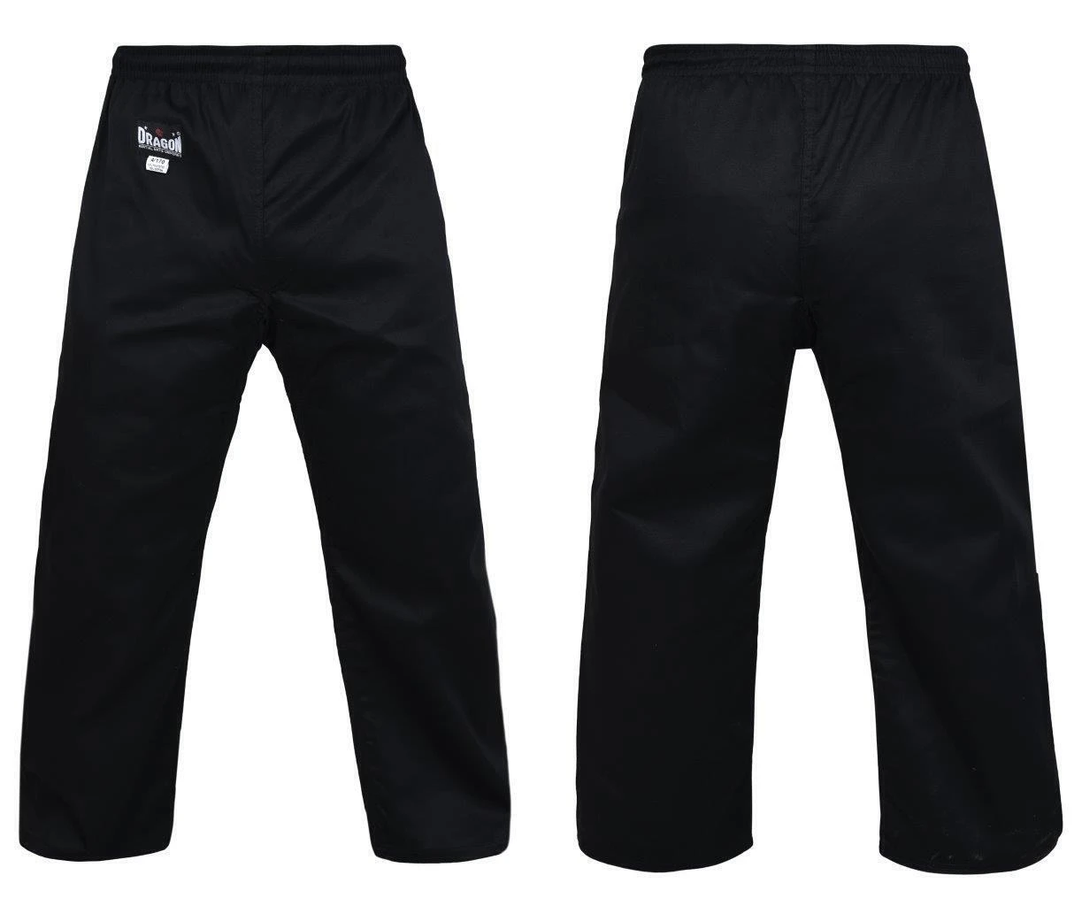 The Dragon black martial arts pants are perfect for students and accepted in almost every karate class. The cotton-polyester material weighs 8oz per square meter, making the student uniform pants light and easily breathable. Designed using a drawstring plus elasticated waistband ensures they are easy to get on and stay on. Pre-shrunk using a 35% cotton and 65% polyester blend ensure these great pants will stay true to their size.
