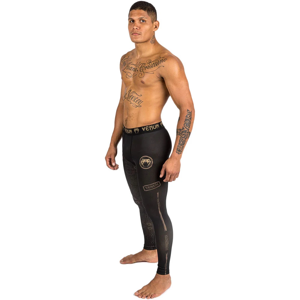 Santa Muerte – “Saint of Death” – delivers fearlessness and strength. The Venum Santa Muerte Men’s Spats offer ultra-resistant compression to optimize your performance during MMA, BJJ, grappling or cross-training workouts. The compression fabric facilitates blood circulation throughout the leg, offering support during training and promoting muscular recovery. Worn as-is, these spats will prevent mat burns during grappling. They may also be worn under joggers to assist with body-heat management.